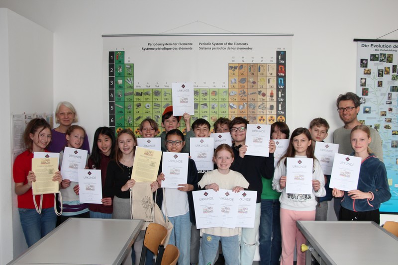 Getestet wurde unter anderem die Saugfähigkeit verschiedener Papiersorten. Außerdem durften die Kinder aus altem Papier mittels Schöpftechnik neues herstellen. Wer seine Versuche gut dokumentiert hat, bekam bei der Preisverleihung eine Urkunde. Aber nicht nur das: Vier mal wurde das beste Prädikat „mit großen Erfolg“ vergeben. Als Anerkennung für diese besonderen Leistungen gab es noch eine Stofftüte, die besteht schließlich auch aus Pflanzenfasern.
