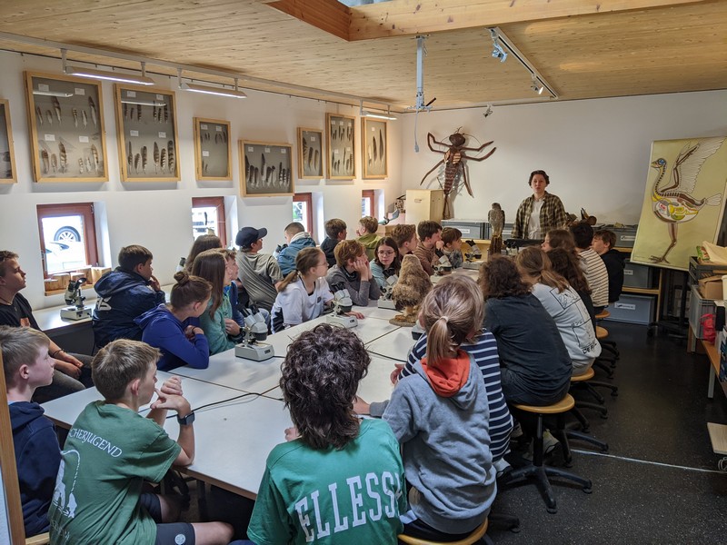 Letzte Woche begaben sich alle 6. Klassen auf eine Exkursion in die Umwelt- und Vogelstation Regenstauf und durften sich dort gleich auf zwei spannende Programmpunkte freuen. Zum einen wurde die Lebensgemeinschaft des Regens genau unter die Lupe und das Mikroskop genommen. Die Tiere wurden dazu von den Schülerinnen und Schülern selbst eingefangen (und im Anschluss wieder freigelassen). Dank Gummistiefeln, Regenjacke, Wechselkleidung und guter Laune war es auch nicht schlimm, dass die Kinder zum Teil im Regen in den Regen stiegen. Zum anderen wurden Anpassungen an den Lebensraum Luft thematisiert. Nach der Untersuchung von Federn, Knochen und Gewölle bekamen die Schülerinnen und Schüler eine Führung durch die Vogelstation, die jährlich über tausend verletzte Vögel versorgt und wieder auswildert. Auch ausgesetzte – in Deutschland nicht heimische – oder fehlgeprägte Tiere werden hier versorgt und an Wildparks oder Zoos vermittelt. Wir bedanken uns bei der Umwelt- und Vogelstation für das tolle Programm!