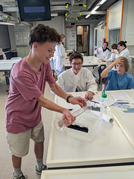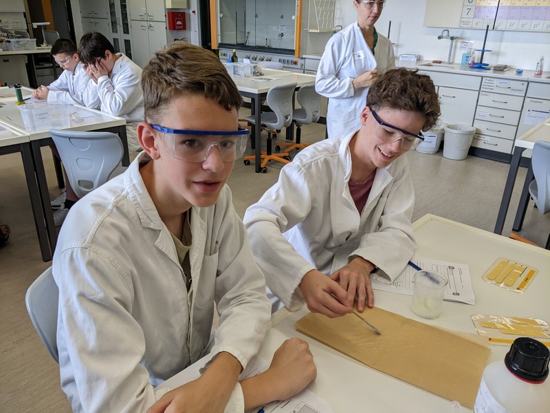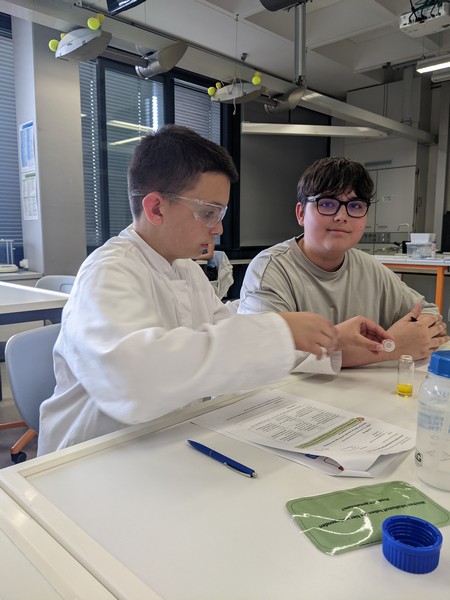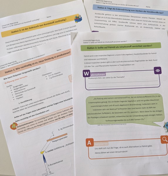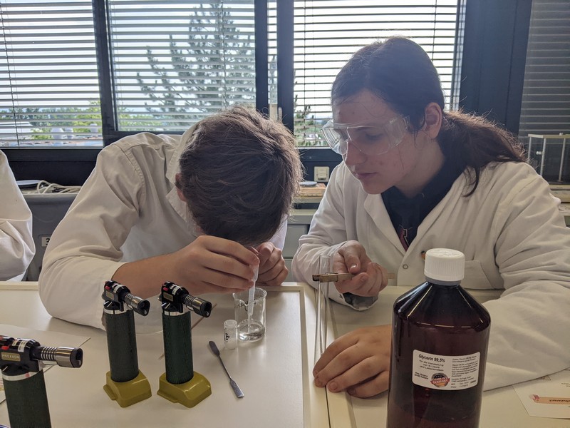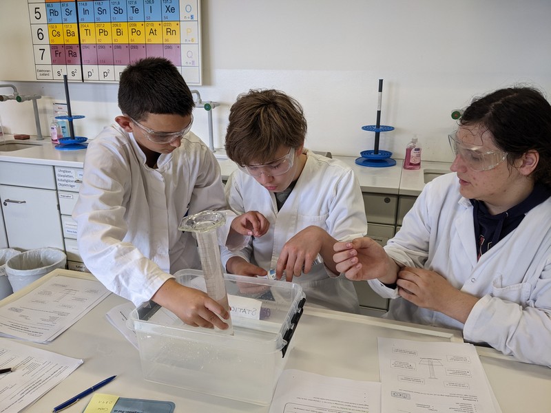 Am vergangenen Freitag besuchten die Schülerinnen und Schüler des naturwissenschaftlichen Zweiges der Klasse 8B den Schülertag der Universität Regensburg. In kleinen Gruppen konnten die Jugendlichen selbstständig Experimente zu Thema „Umwelt und Nachhaltigkeit“ durchführen. Warum ist „Fast Fashion“ problematisch? Sollte auf Palmöl als Inhaltsstoff verzichtet werden? Trägt die Erderwärmung zum Sterben der Korallenriffe bei? Kann man Kunststoff nachhaltig produzieren? Diesen Fragen gingen die Schülerinnen und Schüler an verschiedenen Stationen nach und stellten dabei Polyester, Stärkefolie und palmölfreie Seife selber her.