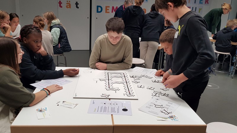 Danach durften wir in Kleingruppen aus Puzzlestücken eine Strecke bauen, die den Ludwig-Donau-Main-Kanal darstellen sollte. Dieser wurde unter Ludwig Ⅰ. gebaut und 1846 eingeweiht. Er ging von Kehlheim bis Bamberg. Ein Mini-Bot, genannt Ozolot, ist die Strecke abgefahren, wenn sie korrekt gebaut wurde. Meine Gruppe war als erste fertig. Es war auf jedem Fall sehr cool. Obwohl es an dem Tag stark geregnet hat, konnten Frau Gradl, Frau Bauer und Frau Reichmann uns so einen schönen Wandertag machen.